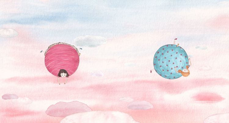 Duas meninas estão a brincar com uma bola. Depois de uma discussão chateiam-se uma com a outra. O seu ressentimento fá-las encher como balões, voam bem alto até perto das nuvens. As meninas ficam presas lá em cima sem ideia de como descer e salvar o seu gatinho preso na árvore.